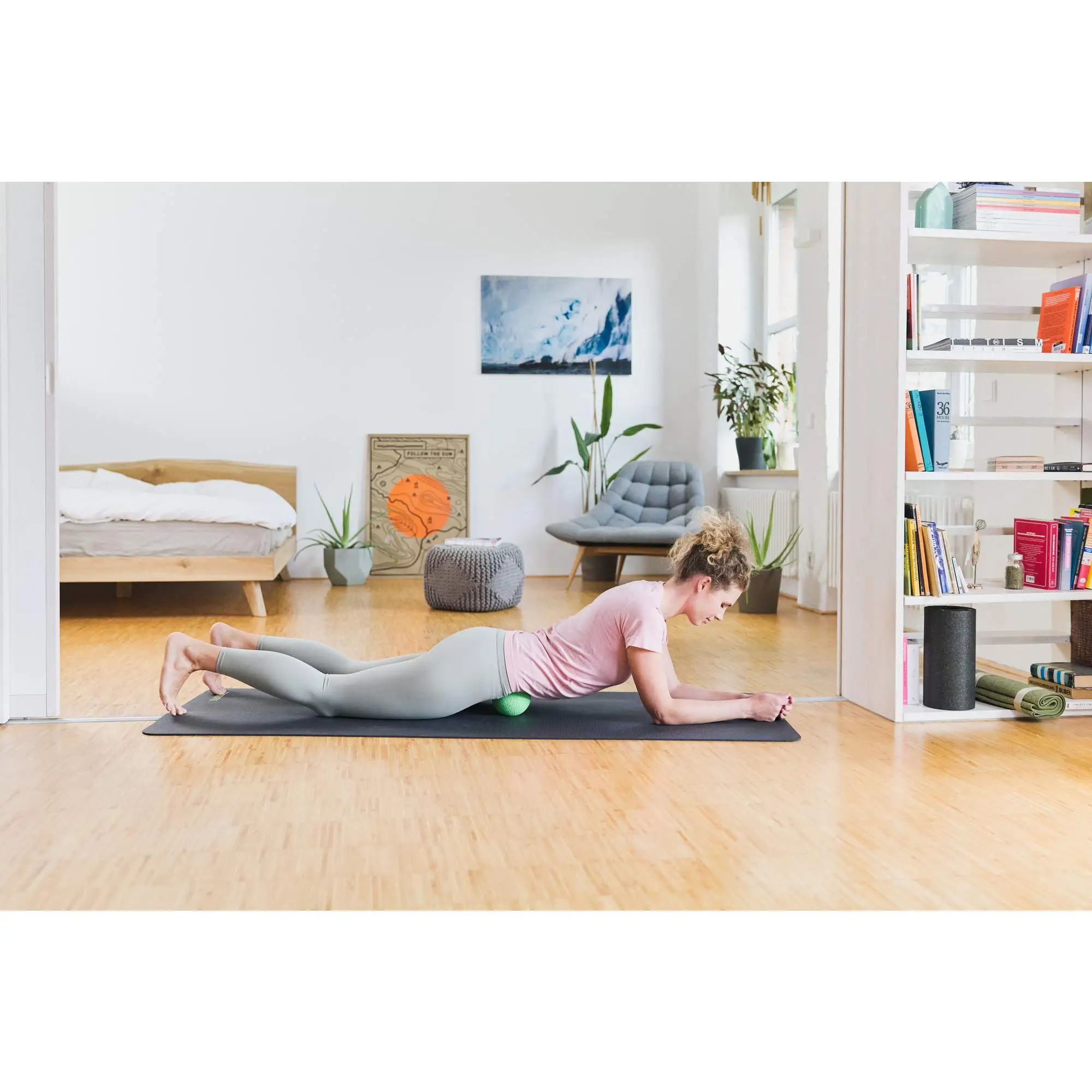 Einsetzbar an allen Körperbereichen wie Rücken, Nacken, Arm, Bein und Fuß. Dafür legst du den Ball auf den Tisch, Boden oder an die Wand und kannst direkt mit der Selbstbehandlung starten. Durch die kleine Oberfläche kannst du gezielt auf die Schmerzpunkte einwirken. Ist ein Triggerpunkt gefunden, kannst du auf diesem 15-20 Sekunden verweilen, um die Verklebungen mit der Zeit zu lösen.