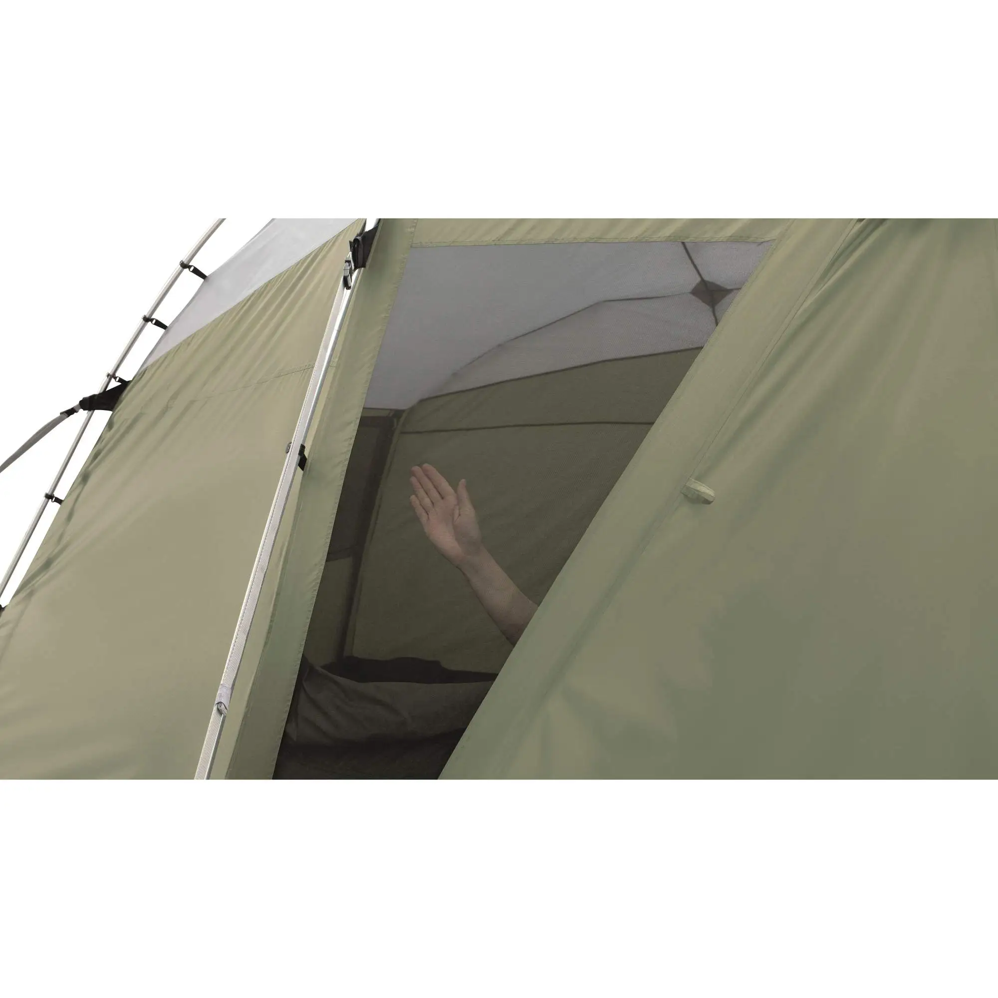 Wie bereits erwähnt, ist das Woodcrest selbstehend, sorgt also im Urlaub für ein maximales Maß an Unabhängigkeit. Wenn tagsüber Ausflüge mit dem Van auf der Tagesordnung stehen, kann die Ausrüstung im Zelt verstaut werden. Und auch wenn es regnet, brauchst du dir dank der Wassersäule von 3000 mm keine Sorgen zu machen, abends einen nassen Hintern zu bekommen.